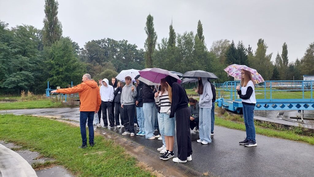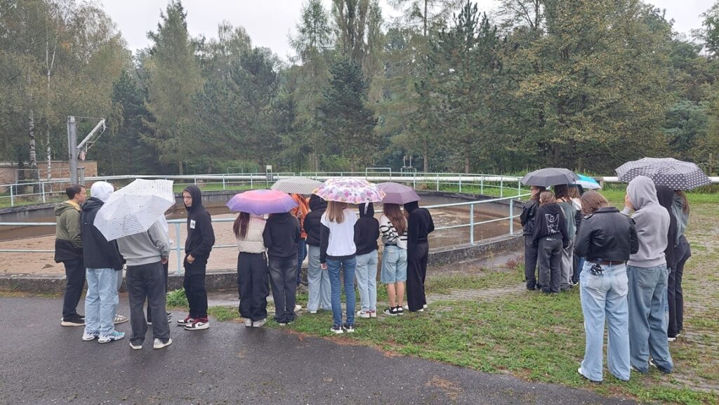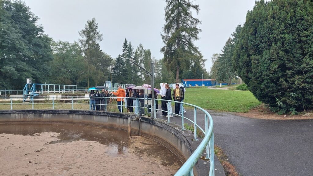 Do čistírny jsme zavítali také dne 30.9.2024. Tentokrát si exkurzi užila třída 1.B a nemusela „závidět“ svým spolužákům čtvrteční prohlídku v dešti, protože ani v pondělí se nám déšť nevyhnul… 🌧 Zvládli jsme to ale i s ním a dozvěděli se spoustu zajímavých věcí. Mimo jiné třeba i to, že pod Pískem je celkem 150 km kanalizačního potrubí a že ČOV vyčistí za rok zhruba 2,5 milionu kubíků odpadní vody.